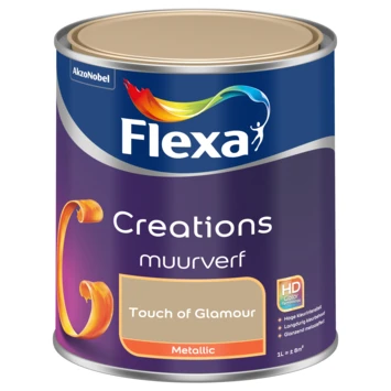 Geef je interieur een nieuwe impuls met Flexa Creations. Flexa Creations muurverf touch of glamour metallic is een watergedragen metallic muurverf voor binnen en geeft een glanzend metaal effect. De metaaldeeltjes reflecteren het licht en geven de kamer een eigentijdse uitstraling. De HD color technology zorgt voor diepe intense kleuren. De unieke formulering vermindert vervaging van kleurpigmenten door UV-licht. Je kunt zo extra lang genieten van jouw Flexa Creations kleurkeuze. Naast de standaard beschikbare kleuren is deze verf verschillende kleuren te verkrijgen bij de verfmengbalie in de GAMMA bouwmarkt. Flexa Creations: een prachtige manier om jouw wereld te personaliseren met kleur! De inhoudsmaat is 1 liter.