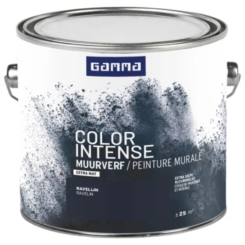 GAMMA Color Intense is een kleurconcept voor binnenschilderwerk van hoge kwaliteit en diepe kleurkracht. De GAMMA Color Intense muurverf extra mat 2,5 L ravelijn is een geur arme watergedragen muurverf. Het blik heeft een inhoud van 2,5 liter, dit is voldoende voor een oppervlakte van ongeveer 25 m². Twee uur na het aanbrengen van de verf is deze reeds stofdroog, na 6 uur kan je de volgende laag aanbrengen. De beste temperatuur om met deze verf te werken is tussen de 8 en 25°C. In deze Color Intense muurverf maken we gebruik van de beste pigmenten, bereik je met deze verf een karakteristiek diepe kleurkracht. Door gebruik van extra bindmiddel heeft de verf een extreem hoge dekkracht en een zeer goede hechting. Hierdoor is de muur ook goed te reinigen met een vochtige doek, daardoor is deze verf uitstekend geschikt om te gebruiken in diverse ruimtes die intensief gebruikt worden, zoals bijvoorbeeld de keuken, gang of woonkamer. Er zijn 20 trendy kleuren kan en klaar beschikbaar in jou vestiging. En de verfadviseurs kunnen voor jou iedere andere kleur mengen. De muurverf is verkrijgbaar in extra mat of zijdemat, zijdemat is verkrijgbaar in de GAMMA vestiging bij jou in de buurt bij de mengmachine. Met GAMMA Color Intense creëer je eenvoudig de woonsfeer die bij jou past, romantisch, industrieel, sereen of juist heel kleurrijk, alles is mogelijk. Kortom deze muurverf is een prima keuze om het jouw interieur een nieuwe uitstraling te geven.