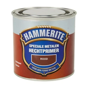 Hammerite hechtprimer rood 250 ml is een watergedragen primer voor non-ferro metalen binnen en buiten. Het hecht uitstekend op zink, aluminium, gegalvaniseerd metaal, koper, chroom, roestvrijstaal en messing. Bij toepassing van Hammerite metaallak op ijzer of staal is gebruik van deze Hammerite hechtprimer niet nodig. De hechtprimer droogt snel waardoor u twee lagen op één dag aan kunt brengen. De inhoudsmaat is 250 ml.