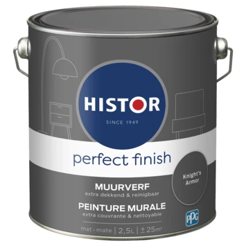Histor Perfect Finish muurverf Knights Armor is een extra dekkende muurverf, ideaal voor alle muren in uw huis. Eenmaal aangebracht bent u verzekerd van een matte uitstraling die langdurig mooi blijft. Naast de standaard beschikbare kleuren is deze verf in meer dan 30.000 verschillende kleuren te verkrijgen bij onze verfmengbalie in de GAMMA bouwmarkt. Voor het beste resultaat kunt u het beste vooraf een dekkende voorstrijk gebruiken. Zorg voor stijlvolle, matte muren in huis met Histor Perfect finish muurverf mat. De inhoudsmaat is 2,5 liter.