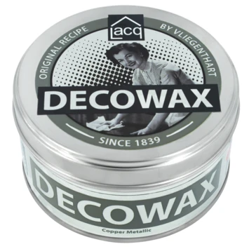 Lacq Decowax copper metal wordt op ambachtelijke wijze gemaakt op basis van een 60 jaar oude, bewezen receptuur. Decowax is een was waarmee houten oppervlakken afgewerkt kunnen worden, maar is ook zeer geschikt als beschermende toplaag over krijtverf en andere poreuze verven. Verkrijgbaar in 12 unieke kleuren waaronder 3 metallic tinten. Inhoudsmaat 370 milliliter.