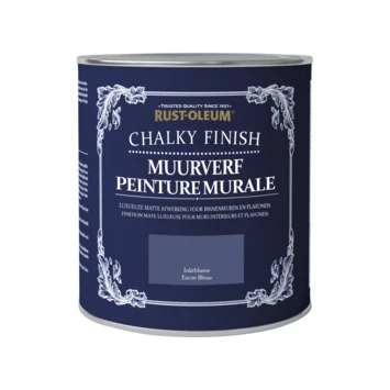 Rust-Oleum Muurverf Chalky finish Inktblauw 1 liter is perfect om bijvoorbeeld de muren van je woonkamer een nieuwe kleur te geven. De luxueuze gladde en krijtmatte afwerking is op waterbasis en dus geurarm. De verf kan rechtstreeks aangebracht worden op de meest voorkomende ondergronden, zoals pleisterkalk, beton en baksteen – een voorstrijk is dus meestal niet nodig! Chalky Finish is heeft een duurzame afwerking en is goed bestand tegen slijtplekken en vlekken. Combineer de Chalky FInish muurverf Inktblauw met een bijpassende Chalkwash kleur voor een complete interieurtransformatie.