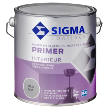 Zoek je een grondverf die zich niet in je muur zuigt en zorgt voor een ultieme dekking van je muurverf? Ga dan voor de Sigma muren en plafonds primer grijs 2,5 liter. Na het aanbrengen van deze primer, heb je slechts 1 laag muurverf nodig als dekkende eindlaag. Bovendien voorkomt de primer de vorming van banen en strepen. Deze witte primer is te gebruiken als onderlaag voor donkere Sigma muurkleurverven en geschikt voor betonnen ondergronden, metsel- en pleisterwerk en gipsplaten. Kortom: de ideale basis voor je schilderklus.