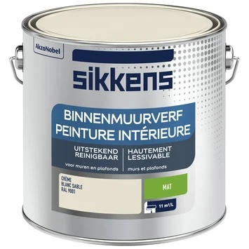 Sikkens binnenmuurverf RAL 9001 mat is geschikt voor het afwerken van muren en plafonds voor elk type ruimte. Het product is bestendig tegen vlekken en uitstekend reinigbaar met behoud van kleur en glans. Hierdoor blijven muren langer mooi en is overschilderen minder vaak nodig. Sikkens binnenmuurverf mat heeft een goede dekking, waardoor een optimaal rendement wordt behaald van de verf. Voor een perfect professioneel eindresultaat te gebruiken in combinatie met Sikkens voorstrijk.