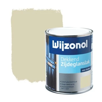 Wijzonol lak dekkend papyruswit zijdeglans 750 ml is een dekkende zijdeglans verf op terpentinebasis. Deze aflak is de ideale afwerking voor goed buitenschilderwerk op uw houten kozijnen, ramen, deuren en gevelbetimmering. De makkelijk verwerkbare verf is toepasbaar op onbehandeld hout, bestaand schilderwerk en voorbehandeld metaal en kunststof. De inhoudsmaat van 750 ml is geschikt voor het verven van 9 tot 11 m2. De Wijzonol lak dekkend zijdeglans heeft een goed glansbehoud, goede vloei en een hoge dekkracht.